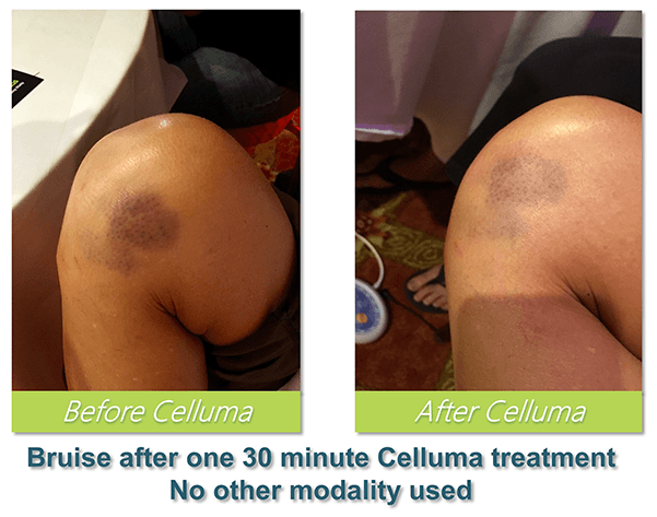 There is little or no sensation as Celluma helps tissue heal naturally from the inside out. Afterwards you should feel rejuvenation and experience less pain.