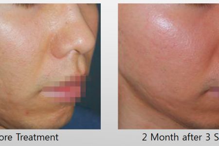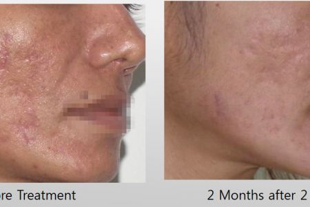 Typically some early improvement is seen due to Collagen contraction and tissue swelling then further gradual improvement continues to occur over the next few months. Full results take 4-6 months as this is how long it takes Collagen remodelling to be completed.