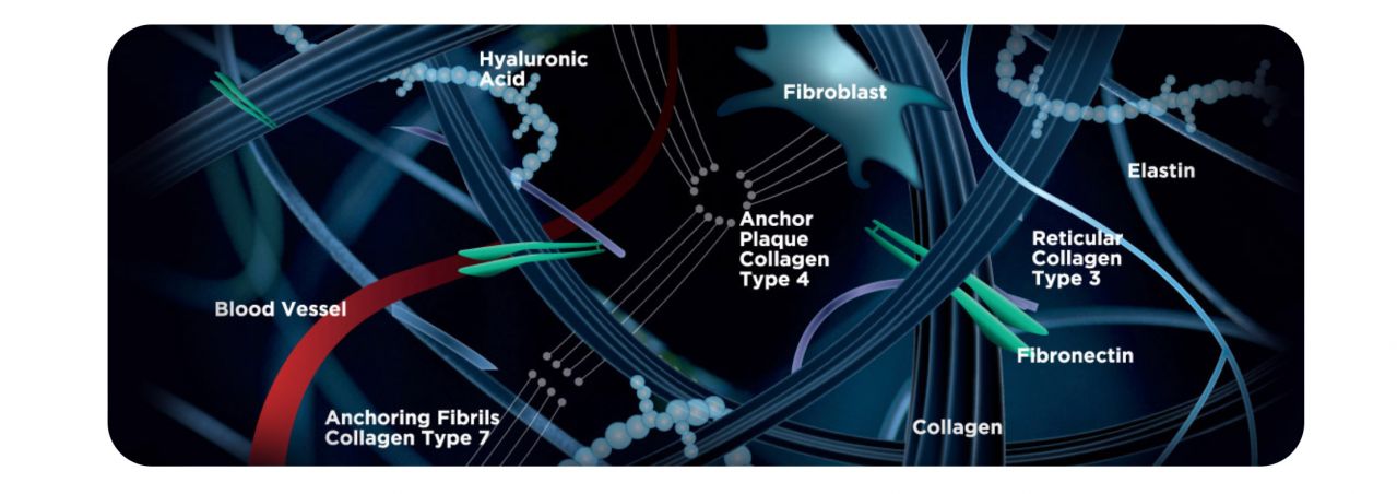Sunekos Performa helps to rebuild the Extra Cellular Matrix in a more effective and complete way, by promoting the production of: