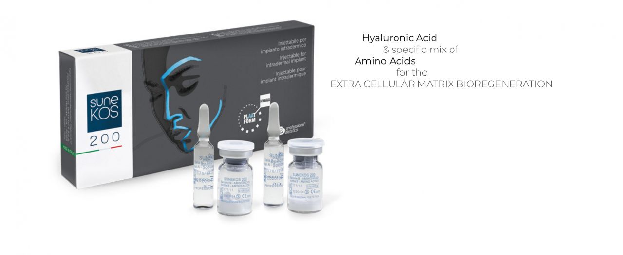 Intradermal treatment with Sunekos® 200 corrects and protects the dermis from the signs of aging. Sunekos is the only natural product in professional dermo-aesthetics that stimulates the synthesis of collagen and elastin, restoring elasticity and volume to the skin.