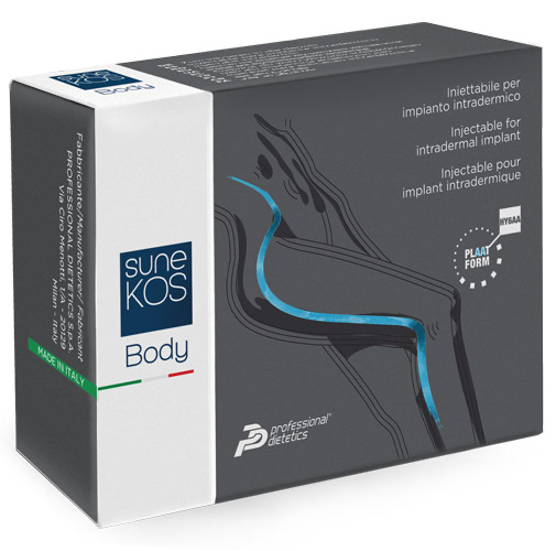 Sunekos Body is composed of 10ml of low density Hyaluronic Acid (HA) + Amino Acids (AA) (HY6AA Formula: Glycine, L-Proline, L-Lysine, L-Leucine, L-Valine, L-Alanine) in a specifically balanced solution adapting to the electrolyte composition of the Interstitial Fluids of the body.