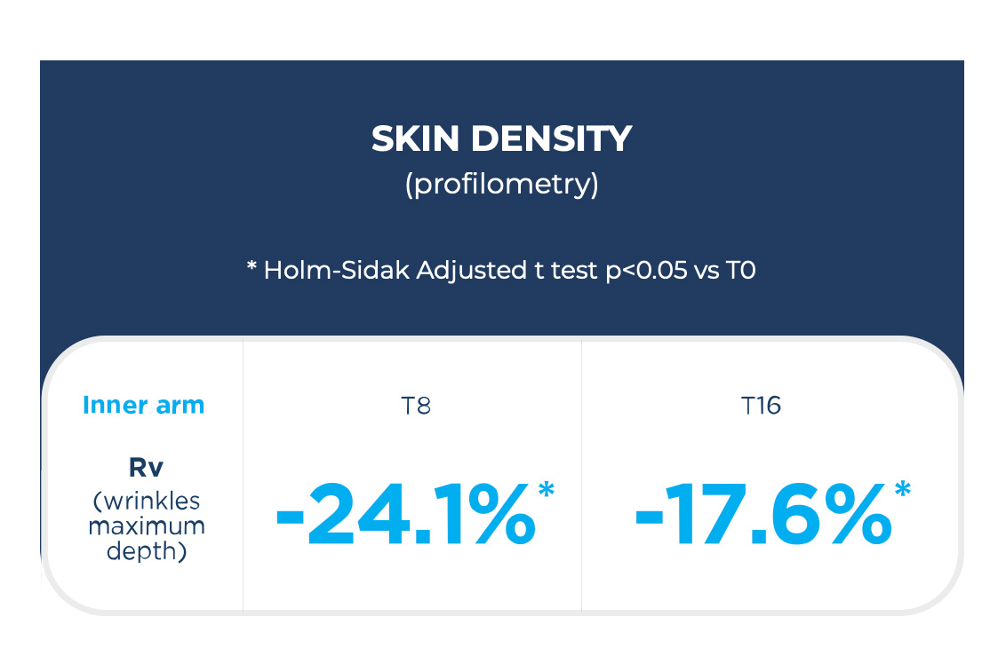 The mixture of Amino Acids in Sunekos Body helps the expression of collagen type IV and elastin, promoting the assembly of Extra Cellular Matrix (ECM) components.